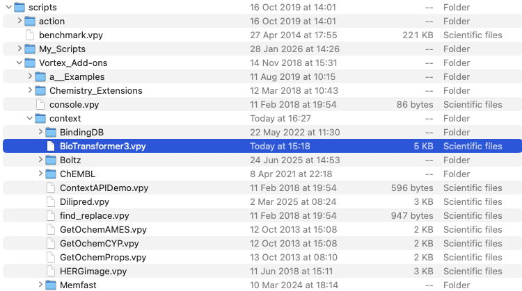 Prediction of the metabolism of small molecules is very challenging and so having a variety of different tools is always useful. I’ve previously written Vortex scripts to use SMARTCyp and FAME2 and BioTransformer [DOI] is another useful tool to have in the toolbox.