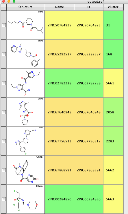 The last part simply annotates each molecule with the appropriate cluster number and then exports the results to an sdf file.